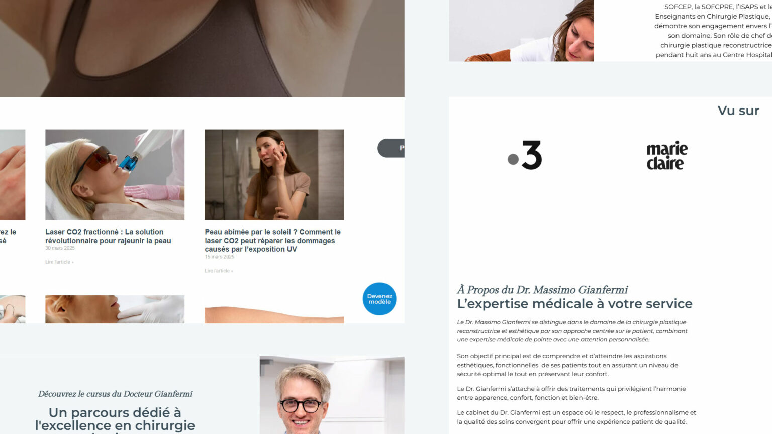 Le Dr Gianfermi, spécialiste en médecine esthétique, disposait d’un site daté, peu ergonomique et difficile à mettre à jour.