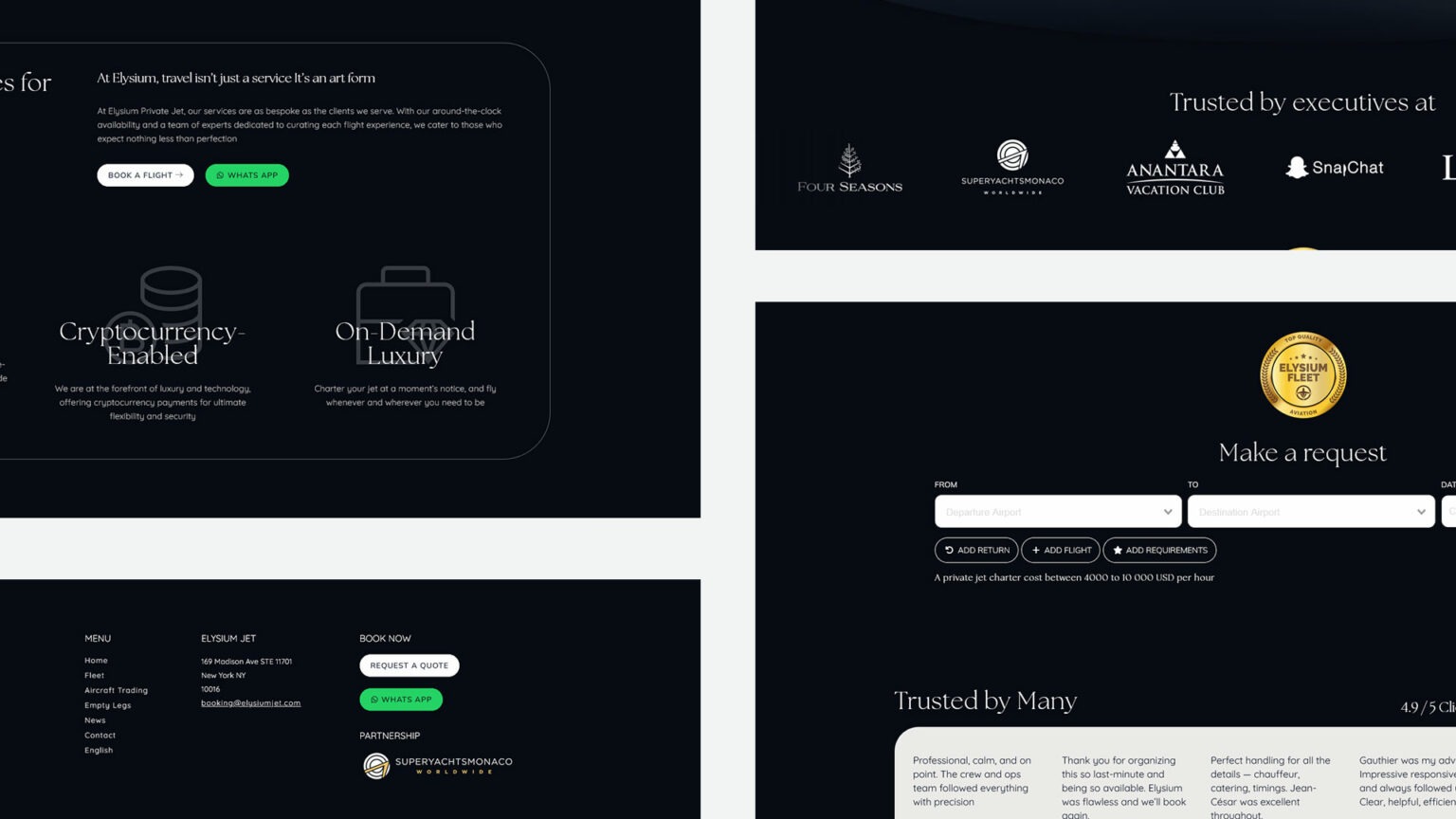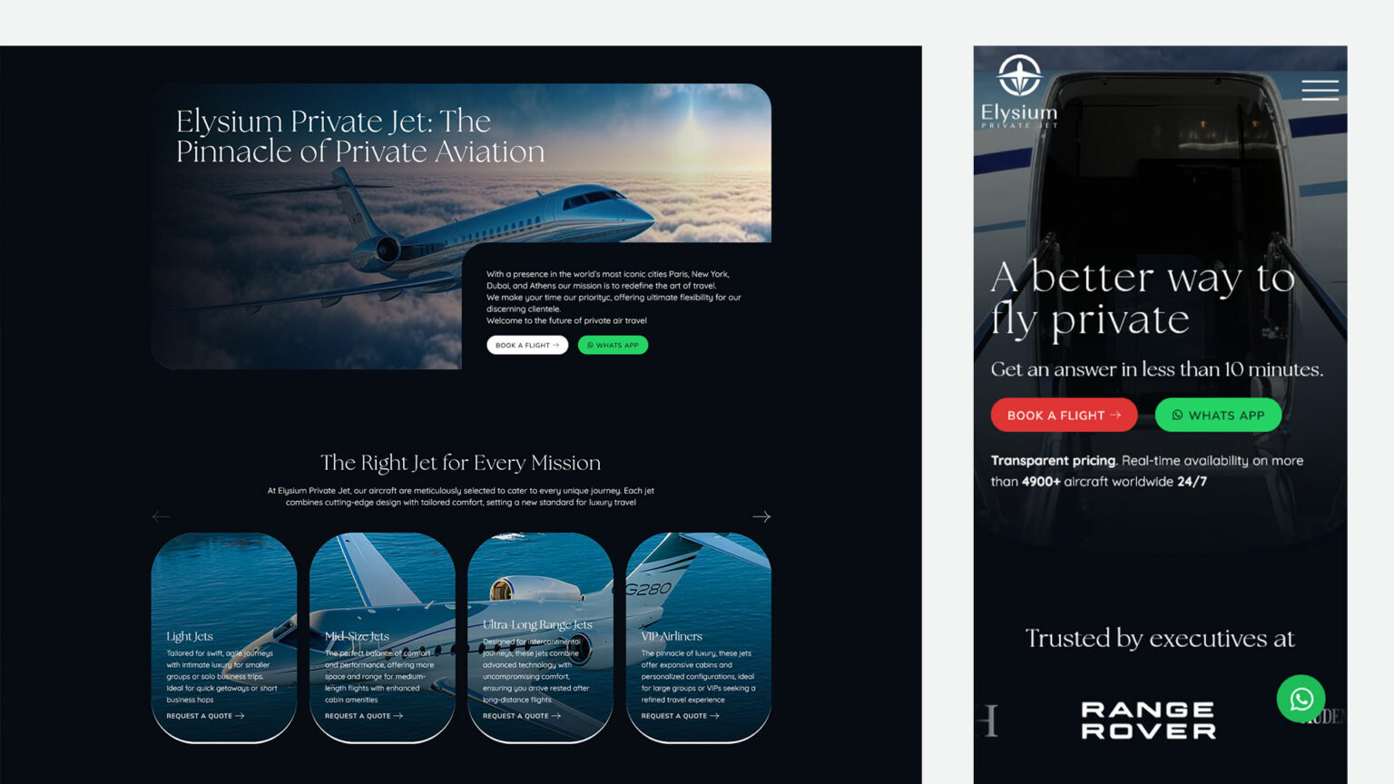 Elysium Jet souhaitait refondre son site pour mieux refléter son positionnement luxe, faciliter les demandes de devis et offrir une expérience fluide sur tous les appareils.